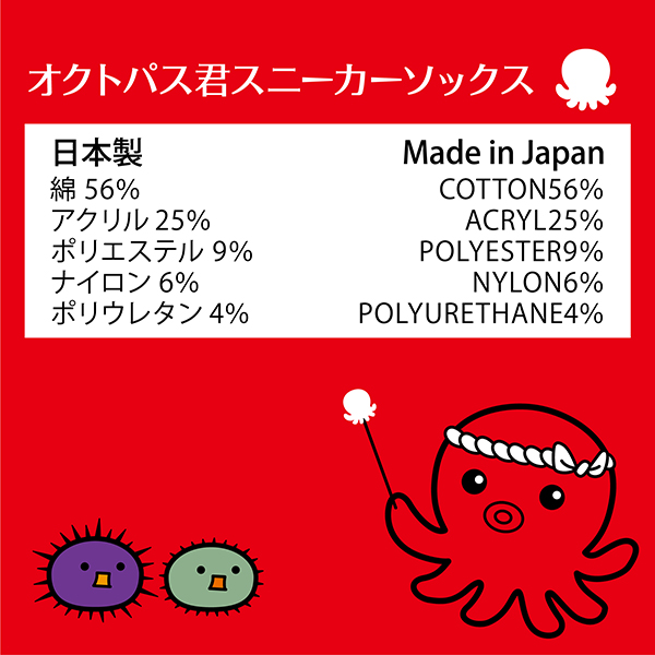 大定番のオクトパス君シルエットが可愛い靴下です。