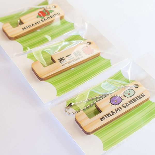 南三陸の木材を使用したかわいいストラップで、飾ってもかわいいです。そして便利。