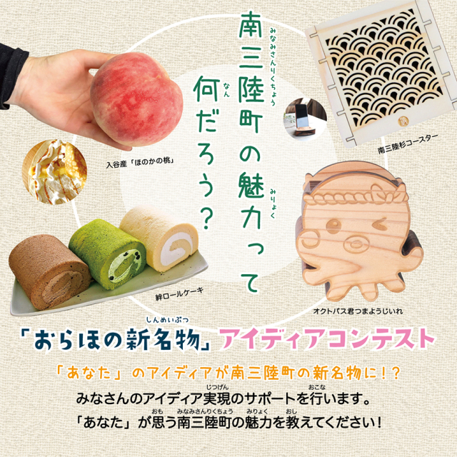 2023年7月21日から9月10日までの期間、南三陸町内の小中学生を対象とした南三陸町の「新名物」を考えるアイディアコンテストを開催、作品を募りました。